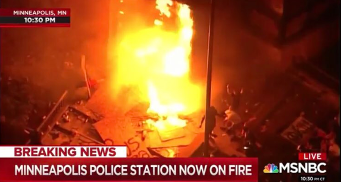 L’efferato omicidio di George Floyd, tuttavia, ha innescato una serie di rivolte sociali che hanno messo in crisi diversi distretti municipali americani. Il giorno dopo l’omicidio, a Minneapolis, diverse migliaia di neri sono difatti scese in piazza e hanno dapprima cominciato a protestare al grido di «I can’t breathe» per poi passare all’azione attraverso il lancio di lacrimogeni, l’incendio di auto, i saccheggi e infine incendiando la sede di polizia che è stata completamente distrutta dal fuoco, come si vede in una spettacolare immagine che sta facendo il giro del mondo.