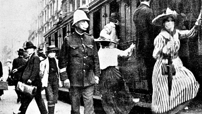 (una immagine dei tempi dell'epidemia di "spagnola", un secolo fa)